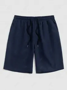 Men's Half Buttoned Casual Vertical Striped Office Pullover Shirt And Basic Casual Shorts Set - Blue